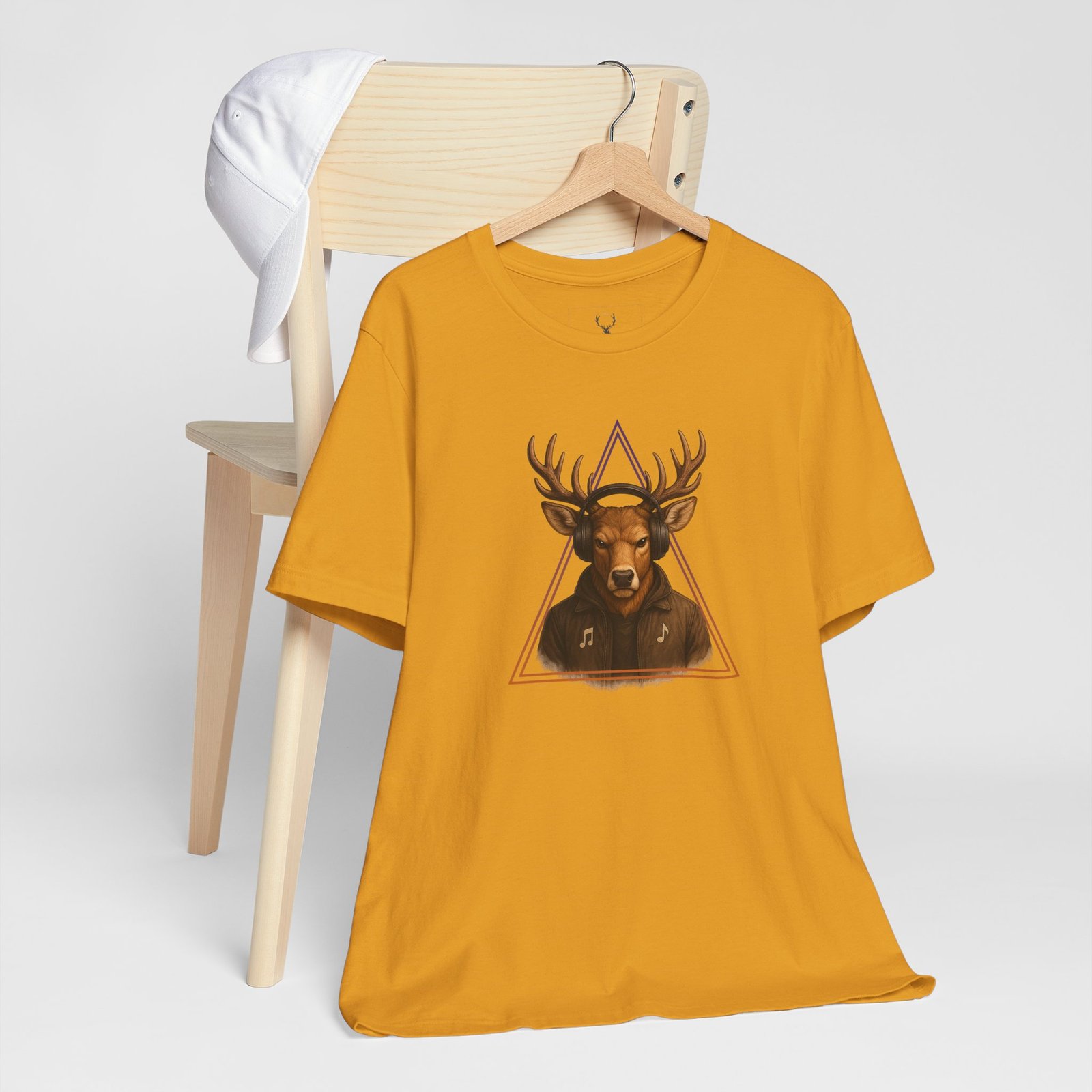Bring bold festival vibes to your style with the Deer DJ T-Shirt, a unique music festival graphic tee crafted for EDM lovers, DJs, and streetwear enthusiasts. Featuring a striking deer design with headphones inside a geometric triangle, this EDM festival shirt perfectly blends music culture and fashion.