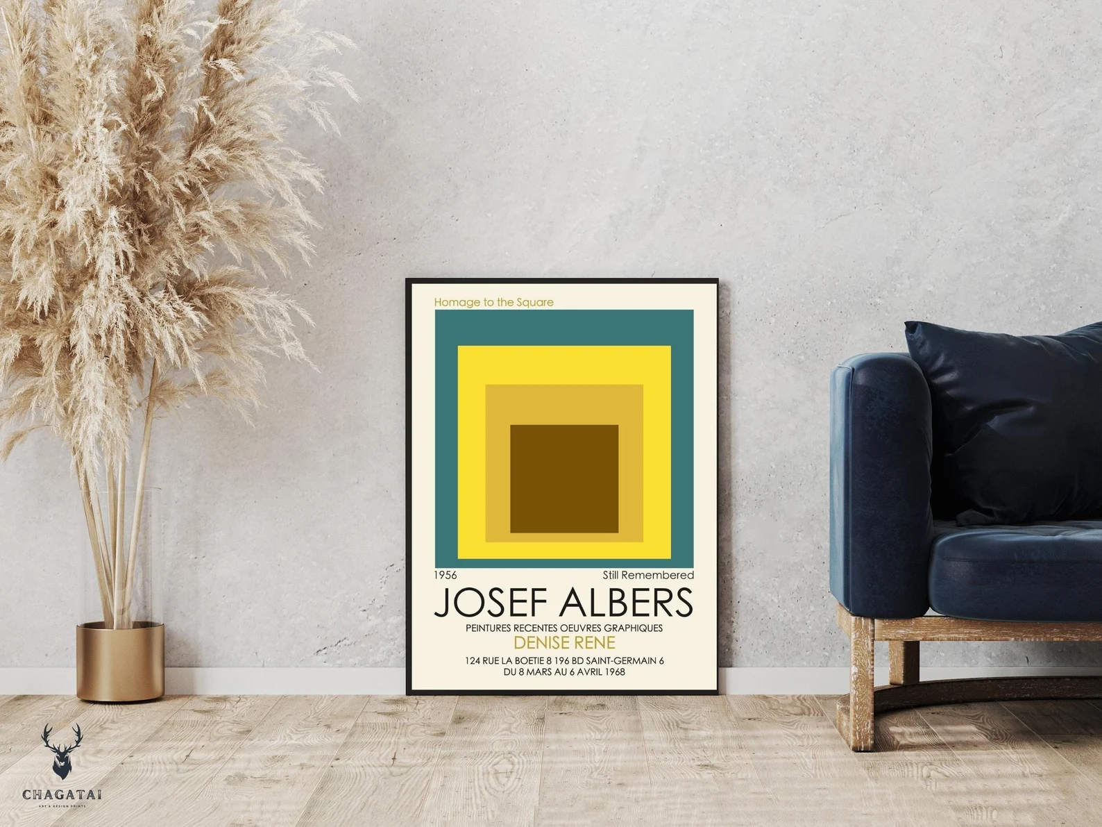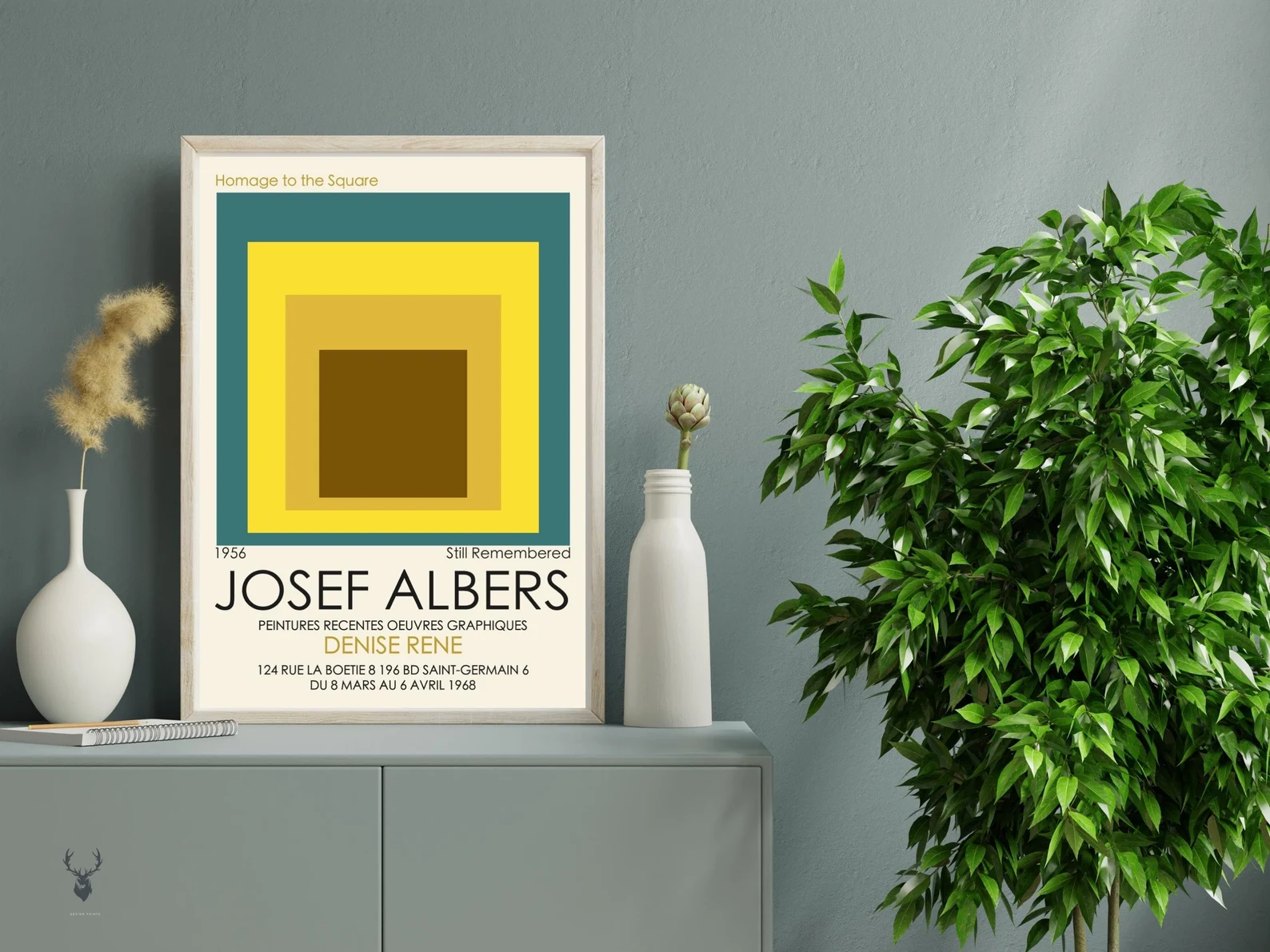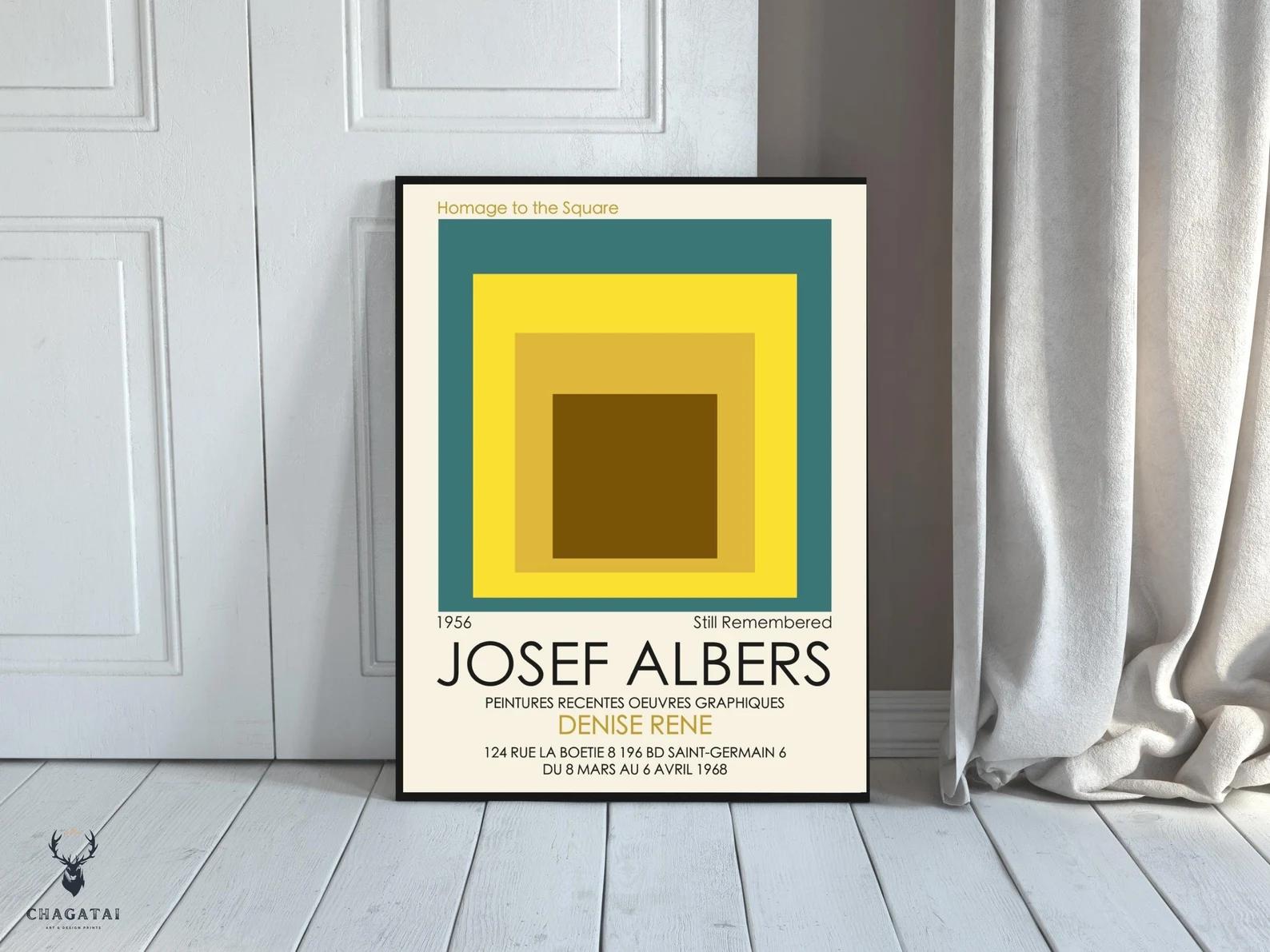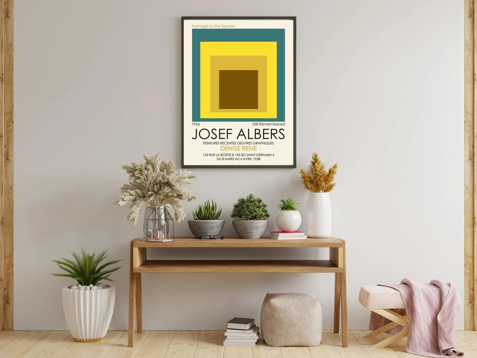 Josef Albers’ square print with nested squares is a perfect addition to your modern boho art wall decor. The geometric design of this Albers museum art print showcases the artist’s fascination with the interplay of color and form. The square and nested square shapes create a mesmerizing optical effect that draws the viewer’s eye in. The use of bright yellow adds a pop of color to any room and brings a cheerful, sunny energy to your home decor. This Josef Albers square print is an excellent choice for those who appreciate the minimalistic yet bold art style of the mid-20th century. It’s a perfect gift for anyone who loves geometric art, modern design, and unique wall decor.
