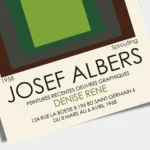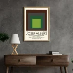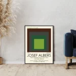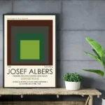 The Josef Albers Print Exhibition Poster features his iconic “Nested Squares” composition in a striking green color. This vintage Albers Poster is a beautiful piece of art that can bring a touch of sophistication to any room. The print is taken from an exhibition at the Metropolitan Museum of Art, making it a valuable addition to any art collection.
