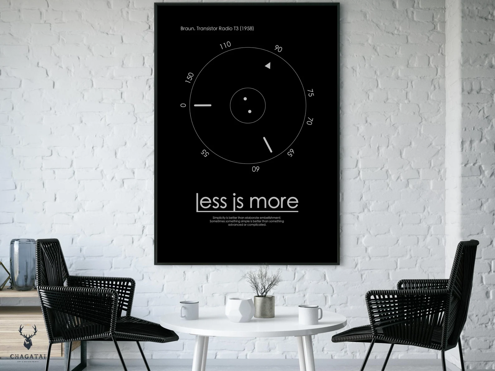 Printed on high-quality paper, this poster will add a touch of sophistication to any design studio or office space. Get inspired by the timeless design of Dieter Rams and his legacy of clean, minimalistic design with this “Less is More” poster.