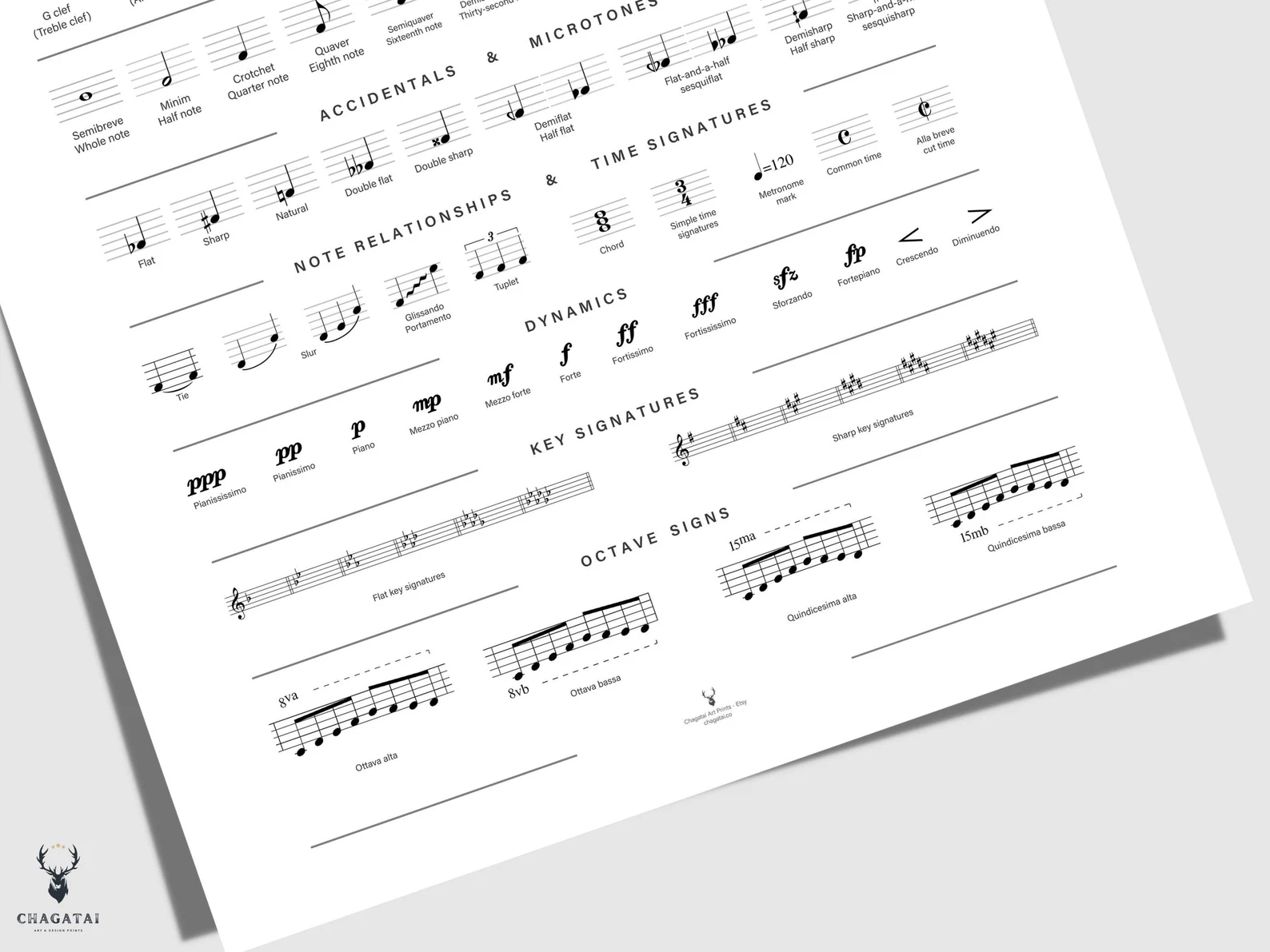 Exactly what I needed—symbols in music, dynamics, key signatures. Works like a music symbols pdf but looks better on the wall.